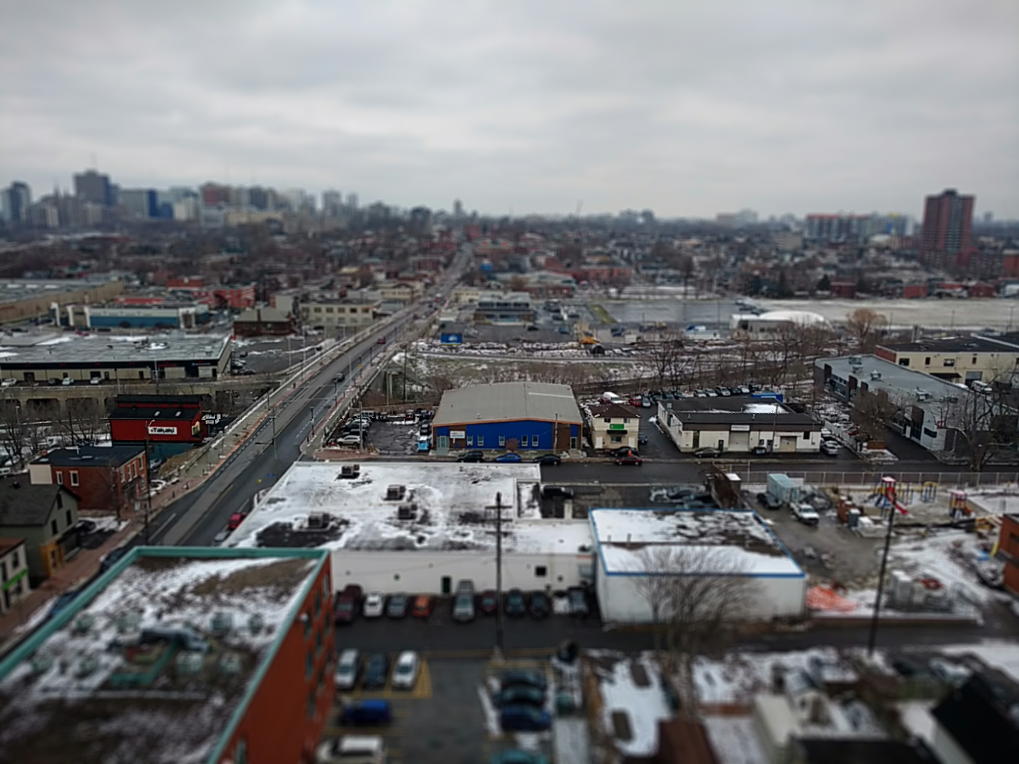 this is a tilt shift, made with a photo from my balcony & photoshop. you use quickmask and the gradient tool to mask the lens blur filter. More annoying than a phone app but also much more configurable.